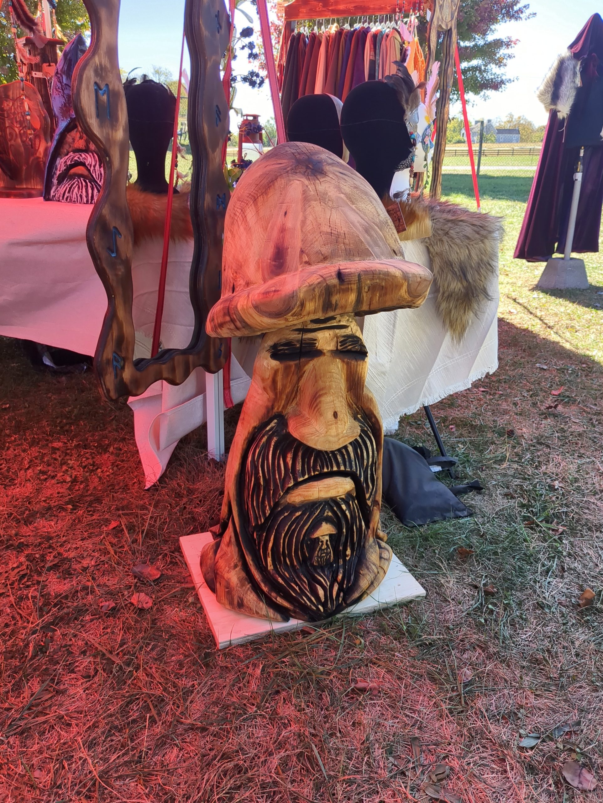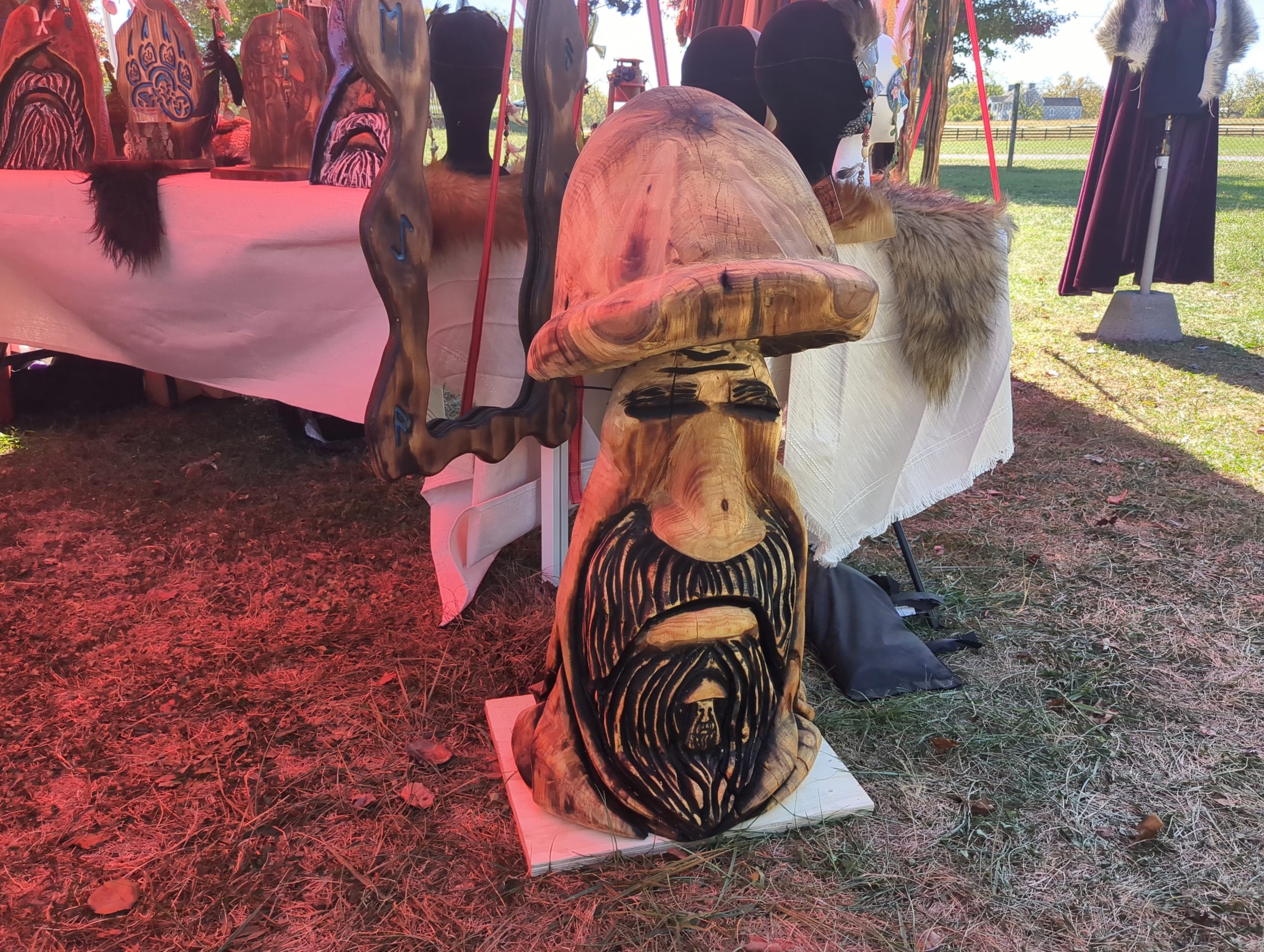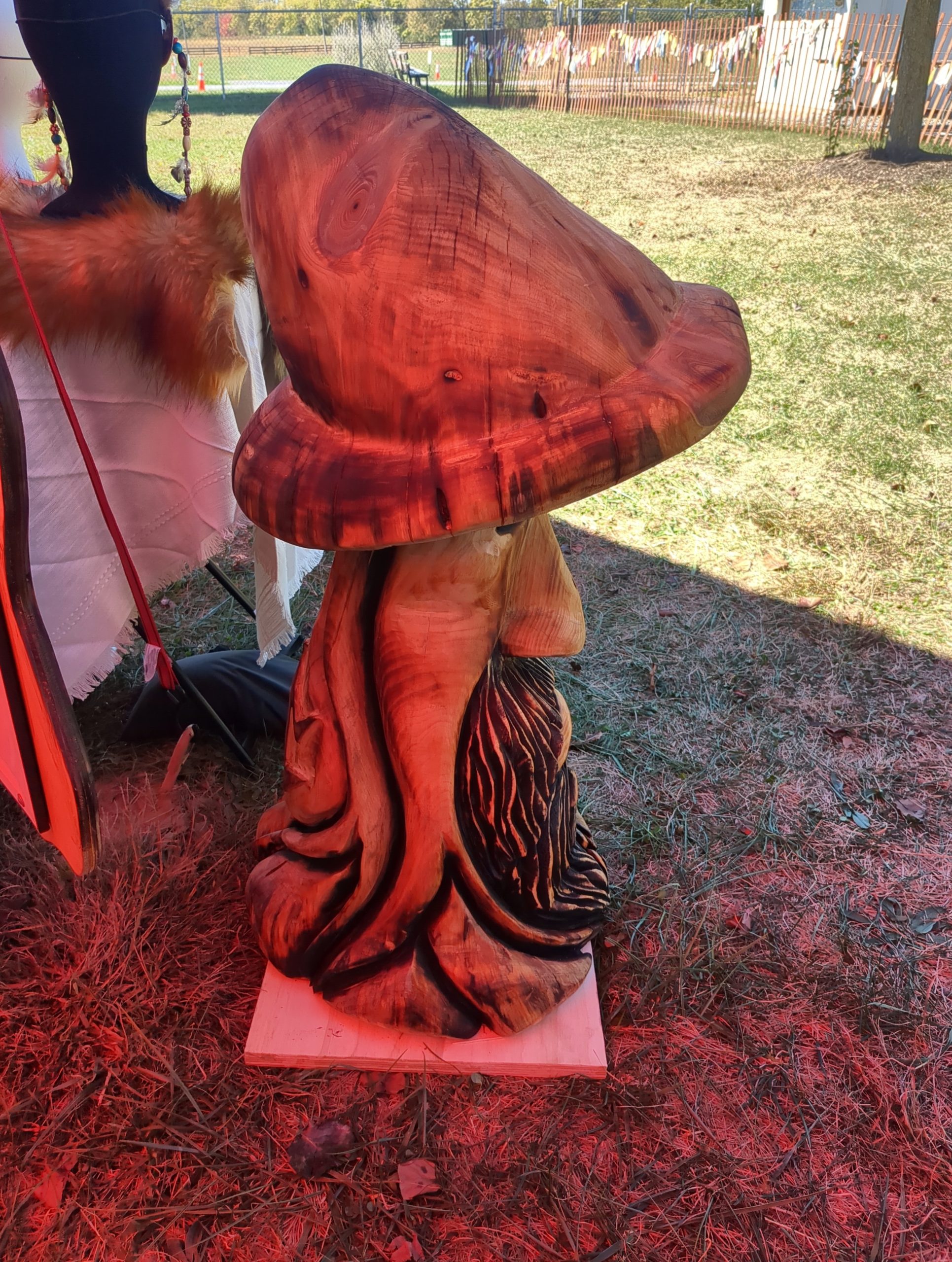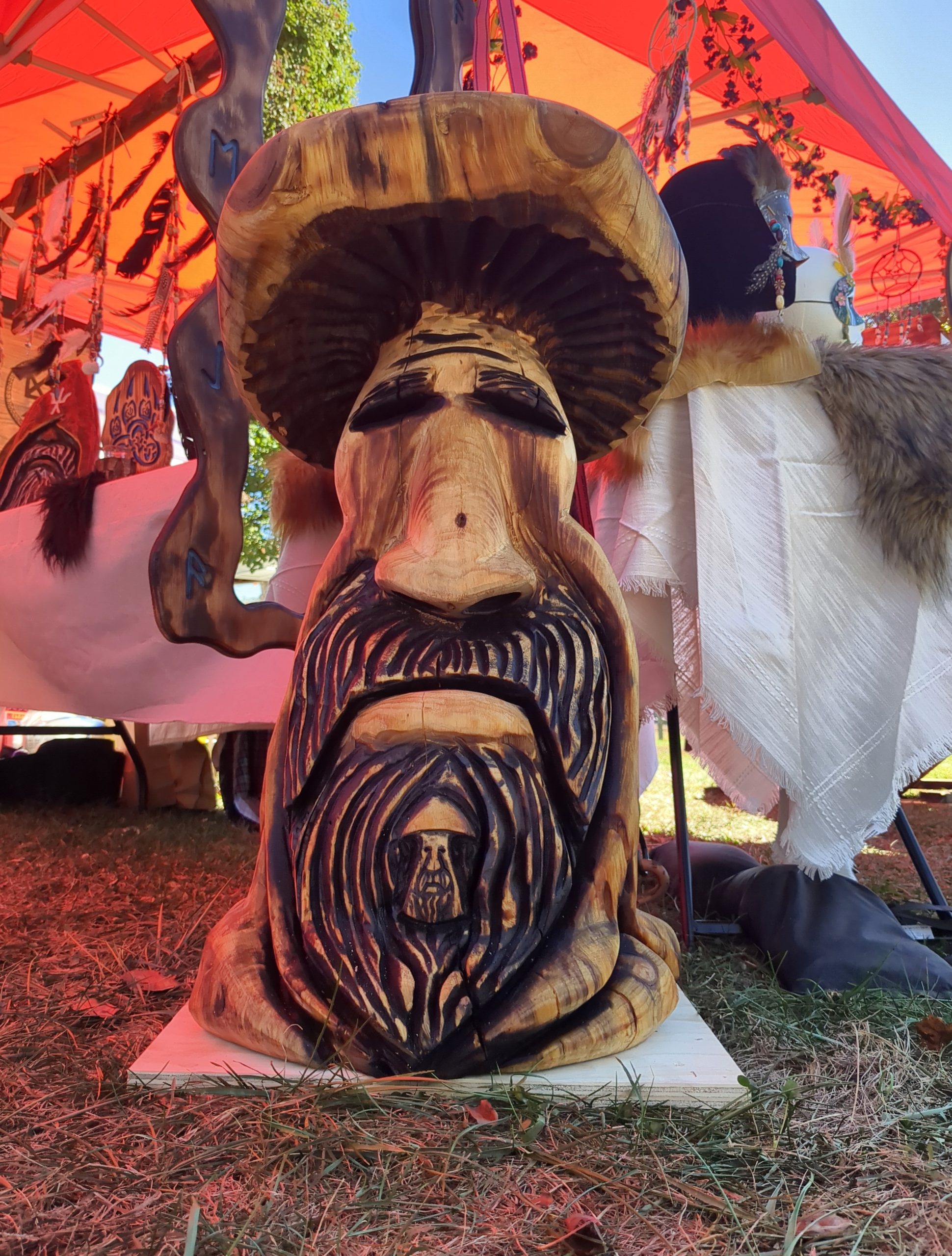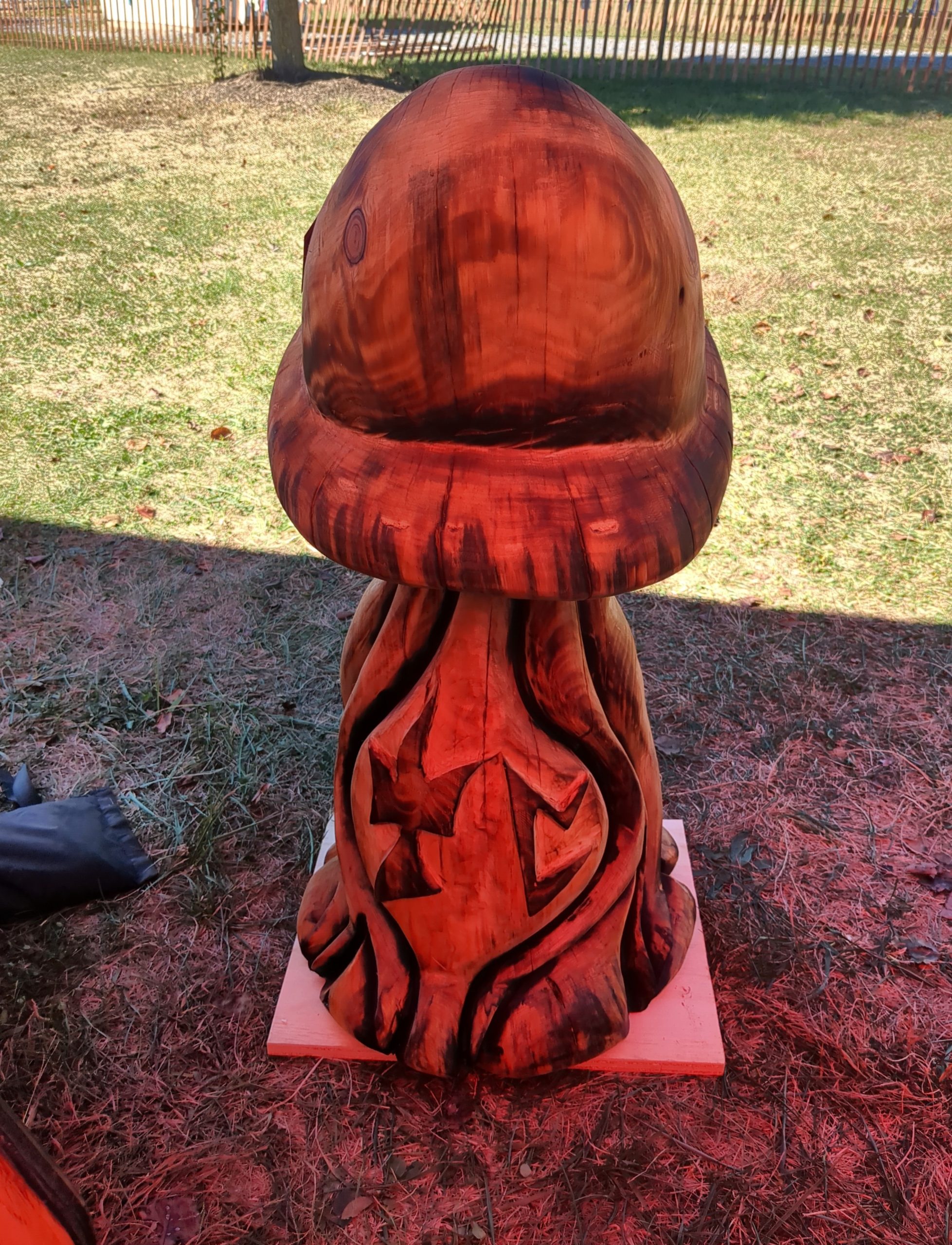Carved from pine log. About 3 feet tall